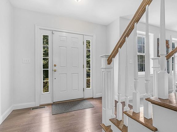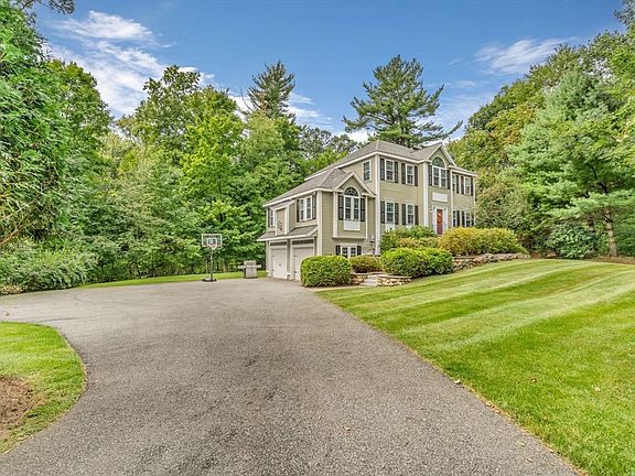 Young open concept colonial located on quiet & private cul-de-sac. Large kitchen with granite countertops, recessed lighting, subway-tiled backsplash, 8ft Italian marble island and stainless steel appliances. Opens up to a spacious and elegant living room with gas fireplace, cathedral ceilings, recessed and tray lighting. Main level a combination of hardwood flooring and carpet. Master suite includes double walk-in closets along with large bath with walk in shower and double vanity. Forced hot air by gas heat and Central A/C (4 zones). Basement fully finished with walkout and in-law possibilities including a fourth bedroom, kitchenette, living room, and full bath. Large walk up attic for storage. Private 1.5-acre beautifully landscaped yard with irrigation. Conveniently located with close proximity to shopping, restaurants and highway access, 495 & route 3.