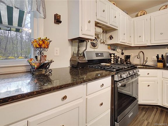 WALK to the Bethel Train Station. This Updated 3 bedroom ranch is in a great location. The remodeled eat in kitchen has newer stainless steel appliances, granite counters and flooring. The wall has been removed between kitchen and living room and a custom breakfast bar installed. This home has hardwood floors throughout the main level. A peaceful deck overlooks the large, private backyard. Yard is partially fenced and complete with an oversize 10X20 shed. The finished basement has a large family room, office, full bath plenty of storage and washer/dryer. In law potential with walkout to backyard. Located on a quiet cul de sac in WALKING distance to the Bethel Train Station and all of the shopping and restaurants the town of Bethel has to offer. See 3D Virtual tour.