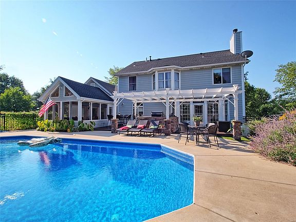 Rare opportunity! STUNNING 2 sty home w/ in ground pool sits on beautiful / private 1 acre lot in the heart of OFallon / Dardene Prairie! Loaded with high end amenities, this beautifully updated home offers sophisticated elegance thru out! 9 ceilings on the main, hardwood flooring, formal dining, office / den, spacious great room with bay & fireplace. High end kitchen with all the bells and whistles, walk in pantry, main floor laundry room w/ built in lockers for the kids. Sun-room off breakfast room features vaulted wood ceiling and overlooks the backyard oasis w/ in ground pool and outdoor kitchen! Beautifully updated 1/2 bath on main. Head up the grand staircase to the second level where you will find a relaxing masters retreat with spa like updated bath. 3 spacious secondary bedrooms share a hall bath. Roof, hardi board siding, gutters and garage doors all 2 years new! 3 car side entry. Kidâs rec area in partially finished lower level.