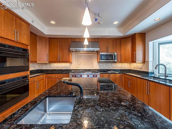 Discover an extraordinary opportunity nestled just steps away from the renowned Broadmoor hotel. Immerse yourself in the enchanting melodies of the Will Roger shrine, gracing the air of this meticulously rejuvenated ranch-style luxury abode. As you step through the double doors into the grand foyer, you'll be captivated by the brilliance of a handcrafted designer chandelier, illuminating an open and inviting layout. Indulge your culinary passions in the gourmet kitchen, a haven adorned w/ exquisite granite countertops, cherry cabinets, & top-tier Wolf appliances. Witness the seamless flow as it unfolds into a butler's pantry, complete w/ a wine refrigerator, Asko dishwasher, all leading out to an expansive patio. Adjacent to this gourmet kitchen, a charming breakfast nook & a walk-in pantry with floor-to-ceiling shelving await. Find comfort in the warmth of the family room/library, where a gas fireplace exudes coziness amidst built-in shelving. Primary suite, a sanctuary featuring a sitting room, a fireplace & state-of-the-art bathroom. Revel in radiant floor heating, an indulgent soaking tub, an expansive shower,& two walk-in closets w/ cherry cabinets. A refined office awaits on the main level, equipped w/cherry cabinets. Unwind in the convenience of a lower level w/ 2 berms & 2 full baths, a kitchenette/wet bar, & an expansive second office w/ custom cherry cabinets. A sauna offers the ultimate relaxation retreat.Elevate your living experience w/ the integration of Smart Home features, ensuring comfort and control even from afar. New top-of-the-line privacy fencing complements the beauty of the 1 acre surroundings. The circular driveway stands ready to embrace gatherings or accommodate RV parking. With a perpetually attached generator ready to restore power, this home promises uninterrupted comfort. This is more than a residence – it's a testament to aspirations achieved, a life of luxury and ease, where every moment unfolds in the embrace of timeless elegance.