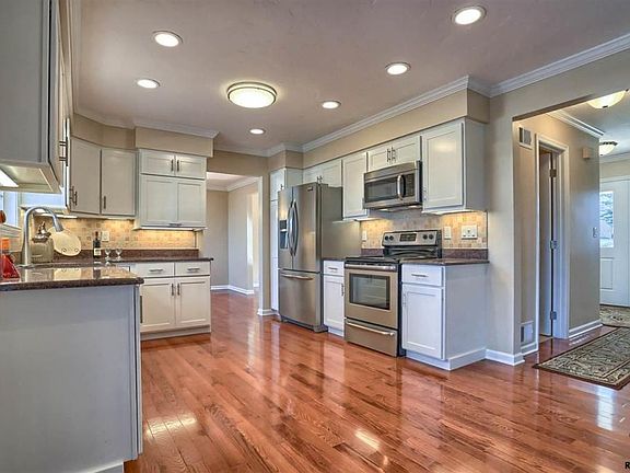 Spacious 2 story home remodeled with excellence by McManus Homes. Cozy family rm w/stacked stone gas fireplace. Remodeled kitchen w/white cabinets, stainless appliances & granite tops. HW floors through-out 1st floor. Hardwood stairs & hallway. Newly carpeted bedrooms. Remodeled baths w/granite counters. Spacious finished basement could be 4th BR w/escape window. Large deck w/vinyl railings. 2 car garage w/storage above. Shed. Convenient to MD