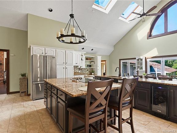 Live, work, and play in this stunning estate, designed for luxury and delight! The main level allows for one-level living in spacious rooms with an open flow. Enter into the living room, where cathedral ceilings, skylights, and a floor-to-ceiling brick fireplace emits a feeling of grandeur. The kitchen and dining room feature the same ceiling height and abundance of natural light, in addition to a kitchen, fit for a chef with two islands, stainless steel appliances, and a wine fridge. A spacious four-season sunroom and covered deck offer additional living space. Walk down the screened porch to the pool house with skylights for year-round swimming. Attached to the pool house, step onto the attached deck for a time in the sun and have a grill. Back at the main house, the lower level provides all the amenities you desire and more! Two private offices, a common workspace attached to a second kitchen, sauna, gym, and storage space. This floor was made specifically to separate your personal and professional lives. The private yard, surrounded by wooded trees, also features a patio and firepit. This truly is a stay-at-home paradise.