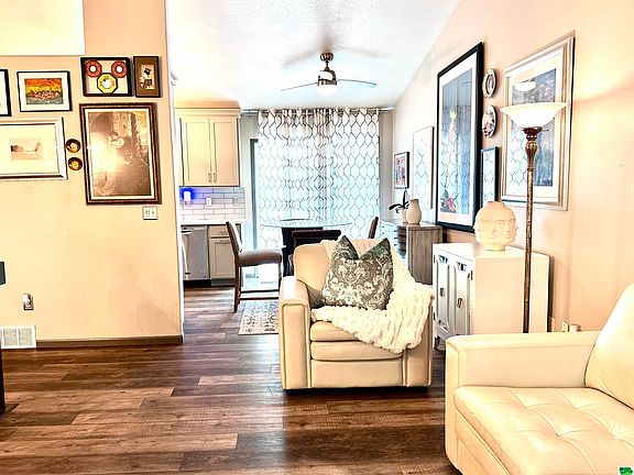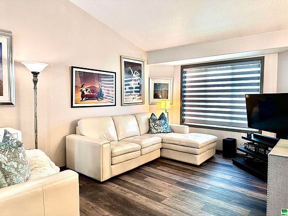 Wow! This Dakota Dunes Prairie property has been nicely updated with many important changes. The split foyer plan welcomes you to the living room with vaulted ceilings, large front window for great natural light, updated to LVP flooring. Open to the dining room with slider door making it light and bright. Open to the beautiful kitchen: grey cabinetry, quartz countertops, SS appliances even a double oven included! Modern light fixtures give a nice flair to the entire home. Down the hallway to the main floor master bedroom with double closets, 2nd bedroom with double closets, and a tastefully updated full bathroom. The lower level offers a 3rd bedroom which is spacious; has an egress window and closet. The family room is L-shaped and carpeted. Hallway 3/4 bath again has been tastefully improved with tile floor and updated shower stall. Radon system in place. Water heater 2020. Lennox HVAC with humidifier in 2020. Water softener is rented. Backyard has a nice deck. Fully landscaped and fenced backyard with sprinklers. This is what you have been waiting for!