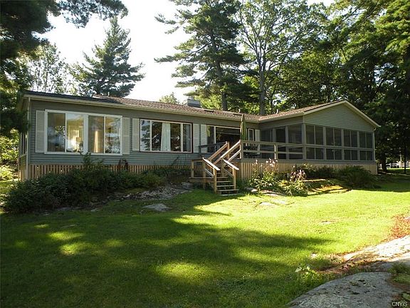 Main channel river home situated on 3.3 acres w/524 ft. of pristine water frontage. This home features 3 BR/2.5 BA, cathedral ceiling, formal dining, sun room, fireplace and detached carport. Also includes a boathouse w/protected deep water dockage. Enjoy the ship views, sunsets and amazing views of Boldt Castle. This property includes 2 parcels so you could sell one or build another home.