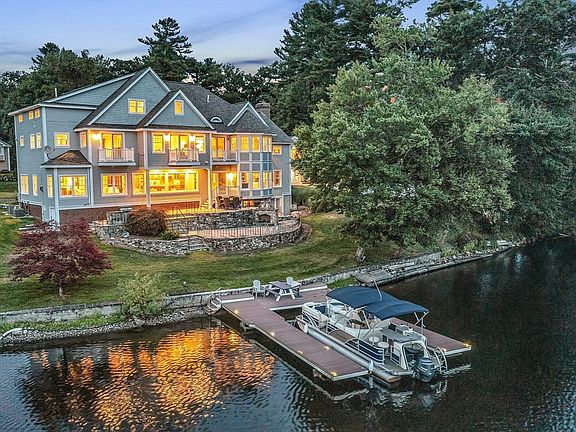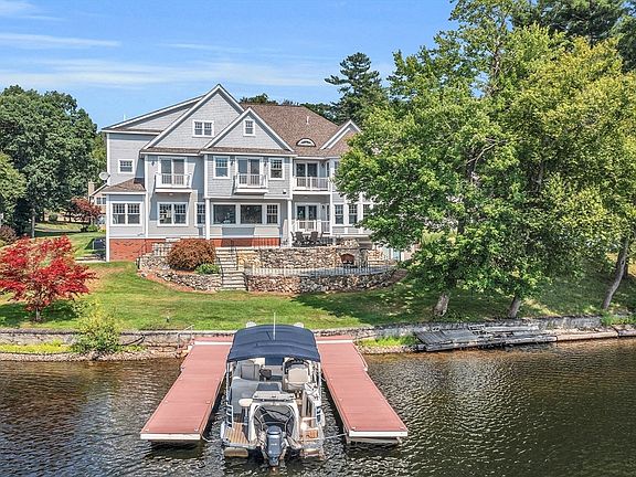 LUXURY WATERFRONT Custom built Contemporary ESTATE directly on Long Sought for Pond with private dock in MOST COVETED neighborhood! Embodies the essence of VACATION and EXCEPTIONAL living! Every detail has been thoughtfully designed with utmost quality. SPECTACULAR water views from almost every window! The Great Room is an Entertainer's Dream and welcomes with soaring 20' ceiling, custom bar, multiple seating areas and magnificent fieldstone fireplace. Gourmet Kitchen is open to FR and designed to enjoy water views from every vantage point. Private office/den with custom builtins. Follow upstairs along STUNNING open balcony to primary suite, with ensuite, luxurious bath and his and hers dressing rooms. Finished Third floor offers expansive recreational space. Walk out, Finished basement has additional kitchen and handsome stone fireplace. External catwalk connects to 2000+ sq ft multifuctional, separate, finished space above garage. TRULY ONE OF A KIND!