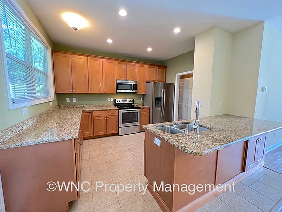 4 BR Home with 2 Car Garage. FEATURES: 4 bedrooms, 2.5 baths, approx 1604 square feet. Open kitchen with breakfast bar, granite counters, stainless appliances, and pantry closet. Bathrooms feature ceramic tile surrounds and floors. Primary bedroom with ensuite bath, double vanity, and walk-in closet. LVP hard surface flooring throughout. Central heat and central AC (electric heat pump). 2 car garage. Covered front porch and back deck. Plenty of yard space in back and side of house (unfenced). LOCATION: Easy access to North Asheville shops, restaurants, UNCA, Downtown Asheville, Beaver Lake, Woodfin River Park, Woodfin YMCA, North Asheville tailgate market, and acres of UNCA walking trails. LEASE TERMS: Available now. One year lease with option to renew. Income must be at least 3 times rent OR 36 times rent in savings. 1.5 month security due at lease signing. First month due at move-in. Cosigners not permitted. Pets will be considered for a one-time fee of $250 per pet; 2 pets max; some homeowners may have specific pet requirements such as breed and weight. $55 per adult applicant for credit / background check. TO APPLY: Submit an application thru the WNC Property Management website. Applications will be processed on a first-come, first-served basis, and there is no charge for the application if we do not process it. Offered by WNC Property Management.