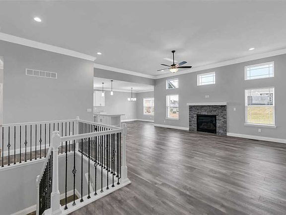 Move in ready!!! Full brick front hip roof fully sodded fully landscaped sprinkler system oversized drive way oversized patio hardwood floors ceramic tile floors tile shower with two shower heads granite on all countertops upgraded cabinets with crown blinds on all windows upgraded doors and trim custom crown throughout home largest lot in neighborhood!!