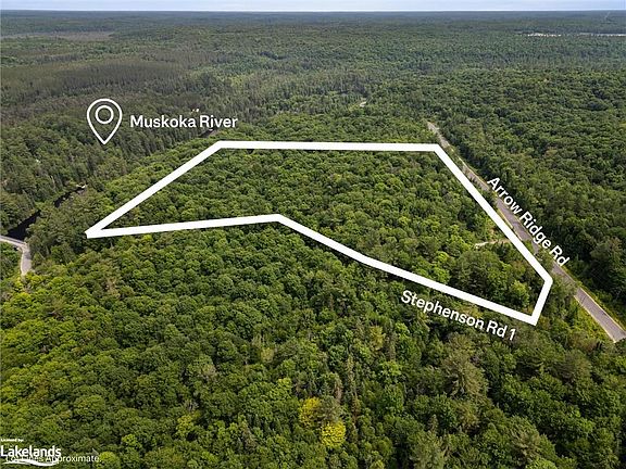 Welcome to 5 Arrow Ridge Road. A mixed hardwood forest with serene table lands, exposed granite rock faces and views to the water. Situated in a year-round community of new estate homes on a paved/plowed municipal road with school buses, garbage collection, hydro, fibre internet and easy access from Hwy 11. Completed septic test hole. The 13.5 acre lot has clear boundaries and is about 150’ to Muskoka River with unincumbered access across municipally owned land for swimming, kayaking and fishing. Situated in the heart of everything Muskoka has to offer. (Bracebridge 8 min, Huntsville 11 min and a straight run of 1hr 45 min to Toronto) (Lake Muskoka 20 min, Lake Rosseau 25 min, Lake of Bays 22 min, Mary Lake 13 min). There are beaches, public docks, 100s of kms of boating, golf courses, entertainment, restaurants, hospitals and lots of winter activities all within short reach. A perfect mix of high-end country living and cottage life. Permits are readily available for building and the site allows for a Main Structure, Garage and Guest House. Use the property in it's entirety or ask your REALTOR® about potential severance opportunities.