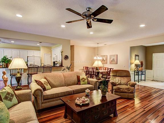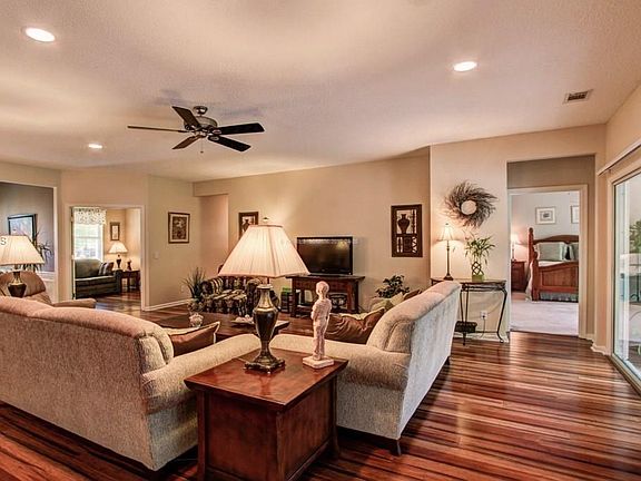 Gorgeous Dogwood in a park-like setting. This open floor plan, great for entertaining, has gleaming bamboo floors thru main living areas. Titled entry foyer, Great Room w/formal dining area. Breakfast bar, eat-in-kitchen, corian countertops, prep island, Wood Tech built-in hutch in hall nook. MBR w/walk-in-closet, bath w/soaking tub & walk-in shower. Guest Room, full bath. Den/office w/dbl. doors. Utility Rm w/washer, dryer, laundry tub & cabinets. Screened tiled porch w/sculpted brick paver patio. Retractable awnings for master bedroom & patio. Pull down stairs in extended garage. Techshield. Sentricon system. Aurora light system.