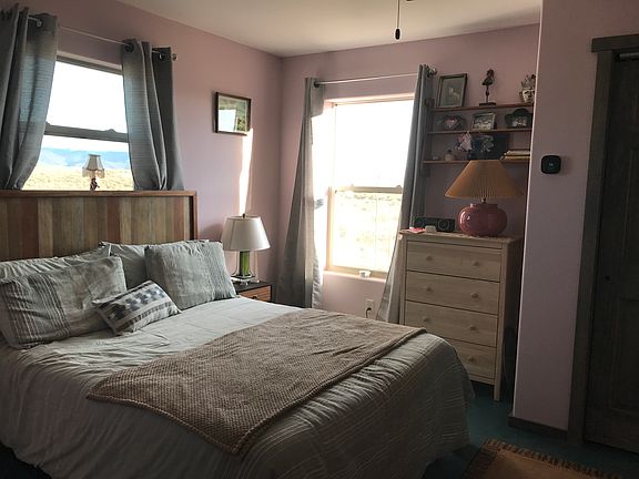 Tiny House Taos offers its first resale on our 840 sq ft, 2 bd, 2 ba, Pueblo-style model. There is currently a 2 yr wait list for this model, as contracts to build are lined up until spring of 2020. The house has radiant heat, with all new appliances, a walk-in shower in master bath, and a large portal to protect your car from the elements. It sits on approximately 1.5 acres, in a rural area, with unobstructed views, including Taos mountain, to the east and south. Upgrades include: fenced backyard with partial latilla fence posts, high-power HDTV antenna, 2-zone Ecobee programmable thermostats with Alexa, 2 Schlage remotely programmable keyless entry locks, fiber-optic WiFi hooked up, an out-framed closet in guest room that increases sq ft to 852, dog door, and window coverings.