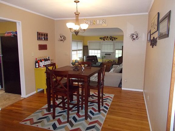 Lovely home with hardwood floors throughout, modern paint and open floor plan. Eat-in kitchen has stainless steel appliances that stay, modern tin backsplash and plenty of storage! Plenty of living space on first level with formal living room, dining room and a bright sun room that overlooks fenced backyard. Second level has 3 bedrooms, all with double closets and recently remodeled full bath with marble vanity. Lower level is fully finished and has large family room with built in desk and shelving and a fourth bedroom/laundry room with convenient half bath. Attached garage and storage she