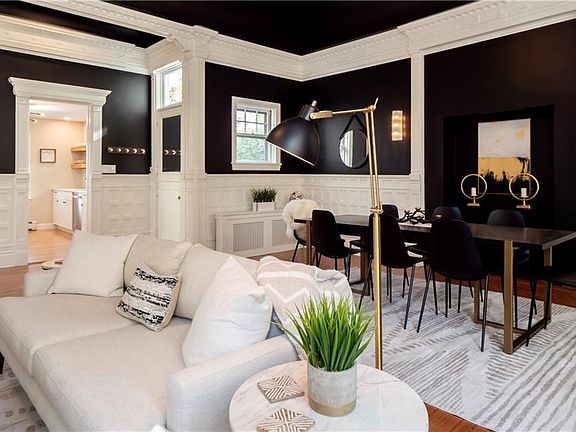 Available Now - June 30th 2023 for a winter term! $2500 per month including internet and water Completely remodeled in fall 2022, this two BR condominium includes the former Billiards Room built for the original house known as Heartsease & retains much of its former detail and splendor and is centrally located in a desirable neighborhood. Upon entering, your eyes are drawn upward to the soaring 13' ceiling with a curved vault framed by intricately carved decorated molding. Whimsically modern bubble light chandeliers float over the great room, gleaming on detailed original hardwood floors. The kitchen is a thoroughly modern but soft & inviting space with white quartz countertops and backsplash. All new appliances include a french door GE refrigerator; a convenient built-in wine & beverage chiller plus dishwasher. The glass-top stove is complemented by the built-in microwave above. The new bathroom has a shower over tub, floating vanity and new yet classic subway & penny tile. The primary bedroom offers a stunning ceiling feature highlighted by a modern light fixture. This room offers two large closets, high ceilings and the original chest high wainscoting. The ceiling boasts original detail and gives this room an elegant, hotel-like feel. The second bedroom is currently styled as a guest room, but would easily convert to an office. Private, separate entry. Shared outdoor spaces and porch, dedicated parking for one car and onsite laundry included in the fee. $2500 per month including internet and water