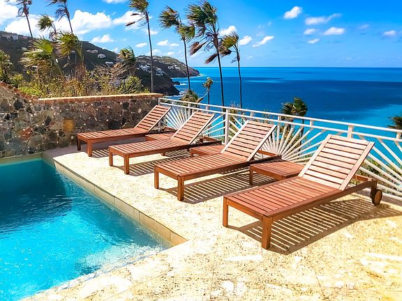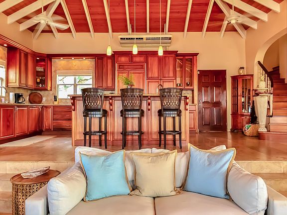 GROSSING OVER $90K FROM SHORT TERM RENTALS. LARGE GROWTH POTENTIAL. RECENTLY ADDED MANY NEW FEATURES. Villa Le Lion D'or boasts stunning ocean views of Hans-Lollick, St. John and the British Virgin Islands. Located in the gated neighborhood of Mahogany Run, minutes away from beautiful Magen's Bay.? The villa's open floor plan allows you to navigate effortlessly throughout. The expansive kitchen, dining and living area have vaulted ceilings. Gourmet kitchen with stainless appliances. Custom mahogany cabinets, doors and staircase. A/C throughout, two laundry rooms, waterfall pool, covered porches, and the entire property is fenced. 1.5 bedroom unit and studio unit below primary residence