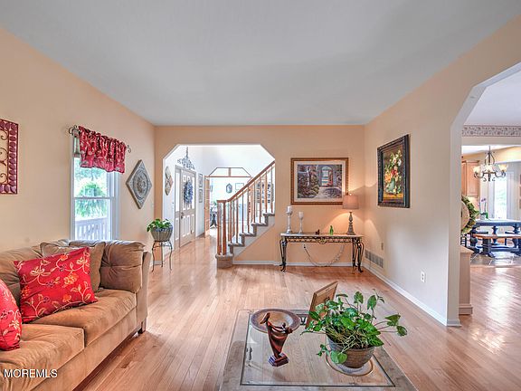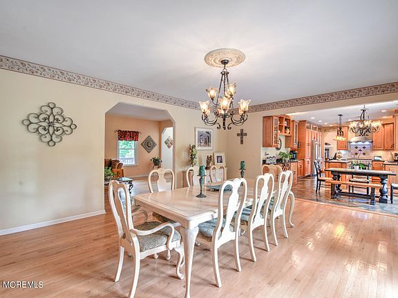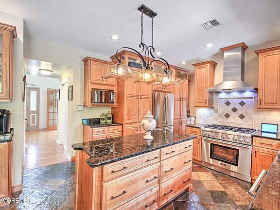 Well-maintained 1997 home & private grounds. 4 BR 3 BA corner lot, 3400ft, 6+ acre. Huge FR, LR & DR. Hardwood floors throughout. Artisan light fixtures. Modern KI, slate flr, tall cabs, island, coffee bar, granite countertops, deep double sink, Thermador 6 burner oven. Lg bright Home Office. Upstairs M BDRM: 2 w-in closets, en-suite freestanding soaking tub, skylight. Lg guest BA w/ htd flr. Enjoy the views, elevated composite DECK + firepit on PATIO. Private woodlands, trails w/ 100's trees planted over 20yrs. Lg open areas-future horse paddock? 2 car GAR, Lg bright UNF BSMT. POTTING SHED w/ skylt, + 24' BARN w reinforced flr + garage dr on a CIRCULAR DRIVE. Gas heat, septic + well. No sewer-water bills! Beautiful Monmouth County, horse country, mins from NJ TP exit 7a -enjoy & preserve