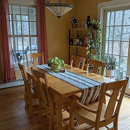 In the heart of Durham! Walk to town, UNH campus, Oyster River Middle School and High School, and the Durham town library. Inside this classic home you will find windows aplenty and a fully updated kitchen with modern cabinetry and soapstone counter tops. The kitchen is bright and well designed with windows on two sides overlooking the spacious backyard. The dining room has a sliding patio door out to the backyard and an open concept that flows nicely into the family room. Also on the main level is a bedroom that can also serve as a nice office space for those working from home. One of the nicest features of the home is a large screened-in front porch where you can sit and enjoy the change of seasons. On the second floor there are two large bedrooms, one which is split by a partial half wall allowing both a sleeping area as well as work space and sitting area. There is a full basement with ample storage and should additional storage space be needed, the property also has a detached shared garage and shed. Wood floors throughout the house, other than in the tiled kitchen, combined with pleasing paint colors give the home a feeling of warmth.