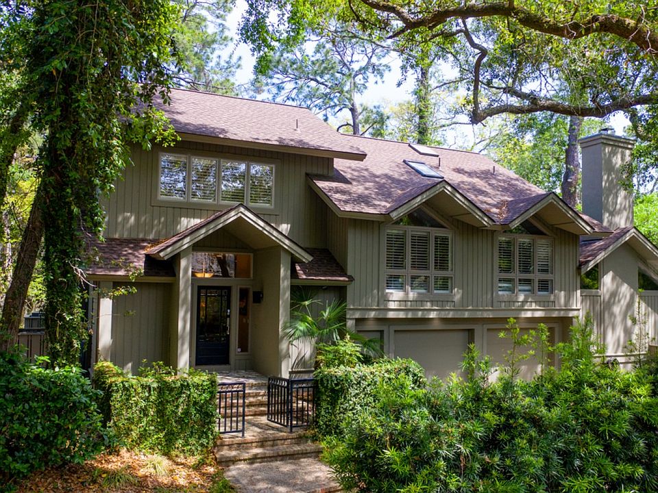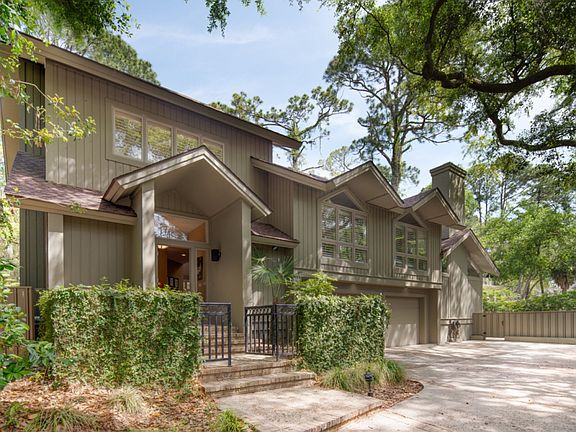 Located 4th row from the beach, along the beach path, is this private 5 bedroom, 5 and a half bathroom home. At over 3300 square feet, this home feels even larger with the vaulted ceilings and large windows. This home offers a great layout with multiple living and dining spaces, as well as an additional loft space. The master suite is on the main level, with 4 guest bedrooms upstairs, all with their own private bathroom. A deck off of the great room leads you to the fenced in outdoor space with pool and spa. Located close to South Beach Marina and all amenities Sea Pines has to offer, this home is ready for you or your guests to enjoy!