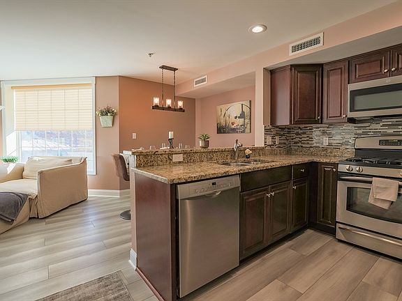 This stunning 2-bedroom, 2-bathroom condo at Wakefield Crossing Condominium offers approx 1,100 sq. ft. of comfortable living space. Step into a beautifully maintained home featuring spacious rooms, an open layout, and abundant natural light throughout. The kitchen boasts modern stainless steel appliances and ample granite counter space, while the primary suite includes an en-suite bathroom with granite double sinks for added privacy. Unit includes a deed parking spot in the heated garage for easy access. Enjoy excellent building amenities such as a fitness center, wonderful Community room with kitchen, fireplace and a garden area/patio area. Located in a prime area with convenient access to Commuter train, Lake enjoyment, and highway access plus all the wonderful downtown shopping and dining! This condo is a true gem!