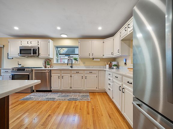 On-site amenities and a showstopper kitchen - Discover life at Bryant Woods! This sought-after, non-age-restricted, and pet-friendly community offers a peaceful country setting with the perfect blend of convenience—located just over the MA border and minutes to Routes 495, 111, 95 & 93 as well as restaurants and shopping. Enjoy walking trails, tennis courts, a pool, RV Parking, gardens and a clubhouse. This 2 BD, 2.5 BA home features a showstopping kitchen remodel with a 3’ x 9’ quartz island, Bosch stainless steel appliances, soft-close and new island cabinetry, quartz countertops, a Blanco sink, recessed and pendant lighting, and newer hardwood flooring. The open-concept living and dining areas with hardwood floors and a gas fireplace create a warm and inviting space for entertaining or everyday living. Upstairs, the spacious primary suite includes a large walk-in closet and ensuite bath, while the second bedroom offers a separate ¾ bath. The finished lower level with daylight windows and a walk-out slider provides flexible space for a home office, gym, or media room. Recent updates include a newer AC condenser, hot water heater, roof, PEX plumbing, and electrical panel. Comfort, convenience, and community—and a cul-de-sac location with just 12 homes! Make 5 Balsam Court your next address! ***Sat, Nov 1st Open House CANCELED ***.