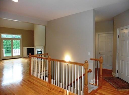 Lovely and spacious garden style condo at "The Woods". Bright and open floor plan is great for entertaining. Living room with gas fireplace, vaulted ceiling, skylights, hardwood floor, built-in entertainment center with French door to deck overlooking treed area. Open kitchen with breakfast bar, wall oven, counter top range, dishwasher, microwave and refrigerator, hardwood floor, recessed lighting. Large dining area with hardwood floor. Master bedroom with walk-in closet and full bath that has oversized shower, ceramic floor and linen closet. Second bedroom, full bath and laundry room with built in ironing board, washer and dryer included. Welcoming front porch, 2 car garage, central vacuum and full basement.