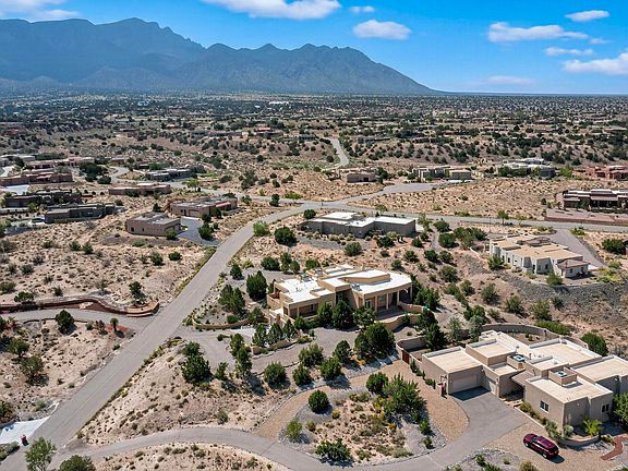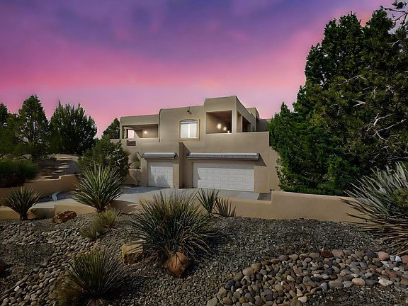 Classic Southwestern home in Placitas with 4,322 sq ft, 4 bedrooms, and 3 baths. High, open ceilings and large windows fill the home with light and frame mountain views. The living room features a double-sided fireplace shared with the primary suite. Two bedrooms open to covered patios, including a private en-suite that features its own incredible views The kitchen connects to the dining and living areas, creating a warm central gathering space. A finished, heated lower-level game room offers flexibility for a theater, gym, or studio. Wraparound composite decks with tongue-and-groove ceilings invite year-round outdoor living. Recent updates include newer roof, stucco, AC units, and reverse osmosis system. An oversized 3-car garage provides convenience and storage.