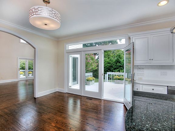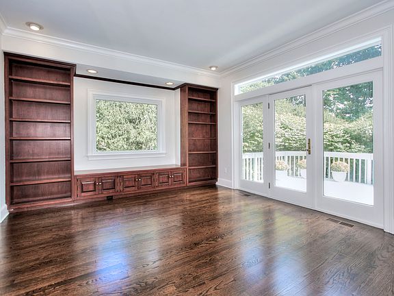 Quiet cul-de-sac, steps to town & train. High ceilings, 2-story foyer & great room, extensive windows & open floor plan contemporize this Center Hall Colonial of almost 5,000SF on private .5 acre. Second floor walkway, open to foyer & great room, allows all 4 bedroom doors to open into an expansive space that includes a soaring granite fireplace flanked by windows. 2 wet bars & floor plan with easy flow are great for entertaining. Enormous master suite. Large open finished basement. Pool site.