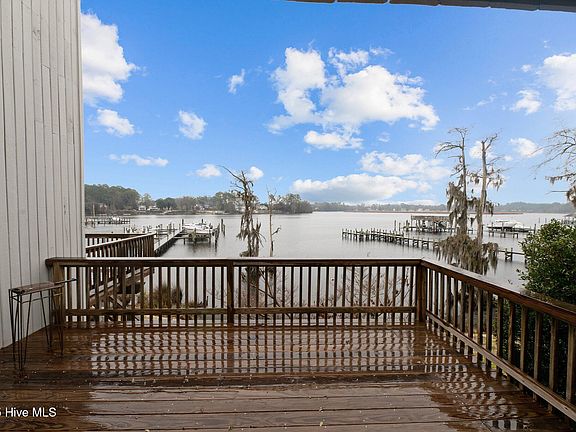 Discover this stunning waterfront townhome situated along the esteemed Trent River in New Bern, North Carolina, just minutes from the historic downtown area. This lovely home boasts two bedrooms and two and a half bathrooms. The spacious open living and dining area seamlessly connects to a large deck that offers breathtaking views of the Trent River. The beautiful hardwood floors enhance the charm of the space! There is also a bar area perfect for entertaining. The kitchen includes granite counter tops Additionally, there is a versatile flex room that can serve as either a formal dining area or an extra family room, which also has access to a deck. The living room features a cozy wood-burning fireplace, perfect for relaxation. The top level includes two bedrooms. The master bath has been renovated to include a walk in shower as well as a separate tub. Take advantage of the lower-level patio for grilling while soaking in the amazing scenery. A tandem two-car garage is included, and the BEST part is this townhome comes with a personal wet boat slip with the option of installing your own boat lift. . The heating and air conditioning unit, along with the hot water heater, were replaced in 2018. Do not miss out on this great opportunity!