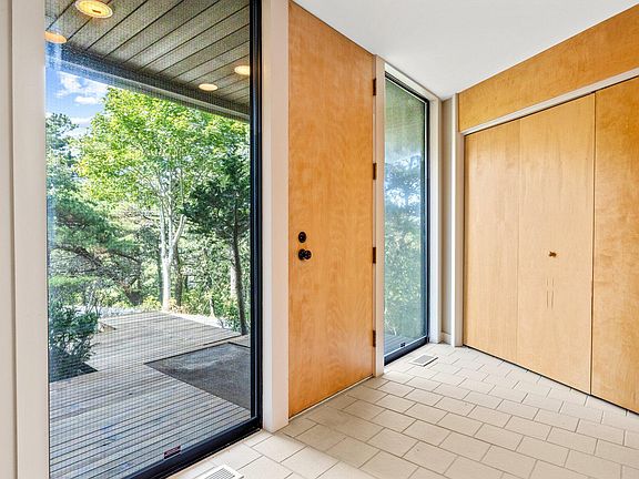 Welcome to 5 Bayberry Ave, a classic mid-century modern designed home cited on a high-point in Provincetown's Meadowview Heights, providing strong architectural lines with walls of glass, colorful tiles, soaring ceilings, solarium, and built-ins abound. The home provides two levels of living with 4 bedrooms and 3 baths. Enter by way of an Asian influenced entranceway into a large vestibule and be welcomed by a serene open air solarium. This first level has two king-sized bedrooms, both with office built-ins, large sliders to the exterior, and walk-in closets. There is a lovely tiled bath shared by both. Ascend the open staircase to the great room, where cathedral ceilings soar above. This expansive space is thoughtfully divided into a dining area for at least 8, an entertainment styled kitchen, and a spacious living area complete with a cozy fireplace. Large glass sliders seamlessly connect the indoor space to the deck, which has an arbor and offers stunning views of the surrounding treetops. The kitchen features classic maple cabinetry with yellow accented fixtures and colorful tiles. With plenty of counter ..... space, storage and a walk-in pantry, the kitchen is both practical and stylish. Leaving this area to the private area of this second level there is a tiled bath with glass shower enclosure which serves as a powder room for guests and part of the ensuite to the spacious guest bedroom. The master bedroom suite occupies about a 1/3 of this level, and is a true retreat with soaring ceilings, and a wall of glass leading to a private deck. Off the sleeping area, there is an office, along with spiral staircase to a mediation area. A classic and fun feature to this home is an open bath area with a large jacuzzi style. As an architect Dan Sullivan designed home, 5 Bayberry was thoughtfully cited and providing passive solar energy and cross breezes from its many sliders ensuring your year-round comfort. Additional features include a low maintenance natural landscape, a generator, two car garage, and a full basement. With classic mid-century touches throughout, the property is being sold as-is, inviting you the opportunity to add your personal signature to its already stunning design. Bright, airy, and filled with bold design, that are unique to Provincetown, 5 Bayberry Avenue welcomes you to schedule a visit for consideration. The seller will consider requests for buyer concessions.