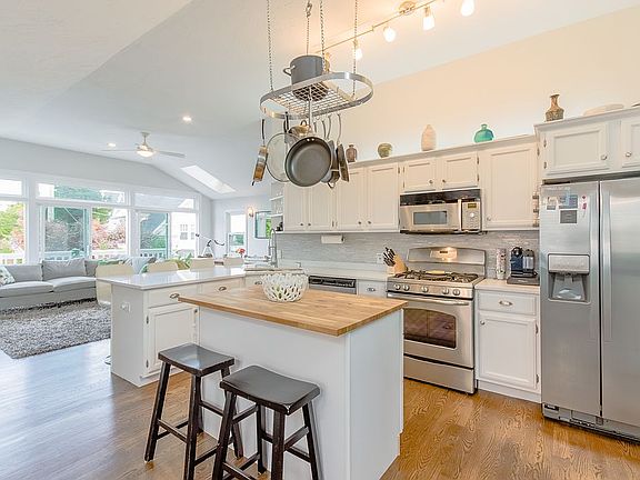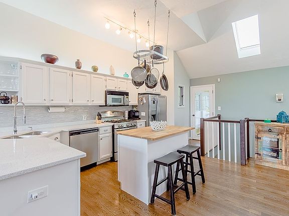 - Kit Dscrp: Flooring - Hardwood, Kitchen Island, Stainless Steel Appliances, Ceiling - Vaulted