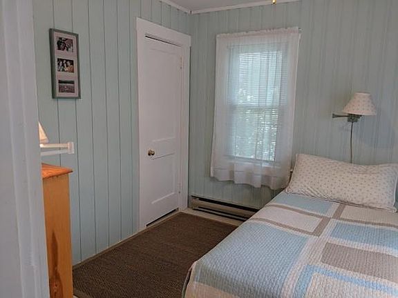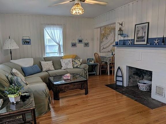 Mattapoisett Beach House just 100 steps to the privately owned community sandy oceanfront beach. With deeded rights to the full length of Crescent Beach, put your towel down anywhere because you actually own it. The community maintained swimming and diving raft is located right here, plus kayak and sailboat storage is nearby, and moorings are available from the harbor master. This grandfathered ground level house enjoys a front deck with no railings and a direct view to the ocean. Inside is a wonderful brick fireplace and hardwood floors throughout the living room and kitchen, white painted wood floors in both bedrooms, ceiling fans throughout, and perfectly professionally renovated bathroom. An outdoor shower and fenced back yard complete this joyful summer retreat. The house is insulated and has convenient electric baseboard heat for shoulder season or year round living. Call for your personal showing and start creating your family beach house memories. New roof just installed.