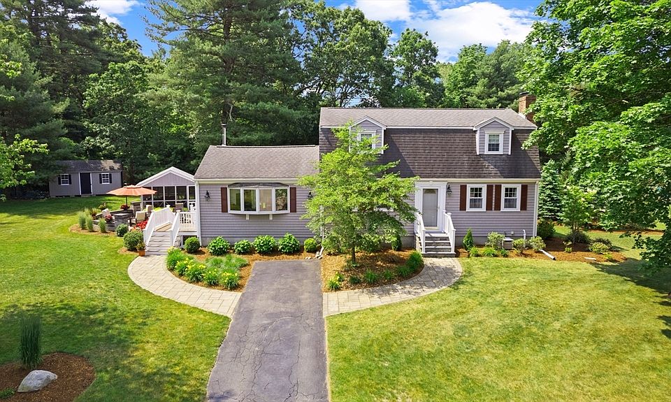 This Impressive 2500 sf gambrel with maintenance free cedar impressions siding is nestled on a quiet cul-de-sac. The home occupies an approximate 1-acre lot boasting 98 feet of water frontage with a kayak launching dock. Recently installed 540 sf patio and landscaping with an adjacent 224 sf 3-season screen house elevate outdoor living. Delight in the modernized kitchen seamlessly flowing into the great room which is complemented by a wood-burning stove and open to a year-round sunroom overlooking the patio. On the second floor, discover three bedrooms, including an expansive main bedroom and shared full bath. In addition the Owens Corning finished basement system offers flexible space for any desired use. Upgrades in heating and AC, coupled with a cost-effective pellet stove, enhance fuel efficiency. Positioned within one of Norton's most coveted neighborhoods, offering nearby walking trails and seamless access to Rt 495 & 95. ALL OFFERS DUE TUESDAY MAY 7TH AT 12 NOON.