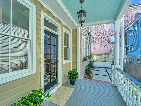 Imagine a thoughtfully renovated historic home built in 1890, combined with all of the modern upgrades a discriminating buyer expects in a home and imagine a downtown home with no history of flooding even during the recent tropical storm Debby. (see photos). This true Charleston single with double Piazzas at 5 Bee Street is just that. The double side porches run a full 50' along the right side of the house adding that unique Charleston character to the home and offer a perfect spot for morning coffee or an evening cocktail. The welcoming foyer draws you in with beautiful marble flooring and custom walnut cabinetry with tons of storage and serves as an upgraded ''drop zone''. To the right of the foyer is what can only be described as a totally renovated true chef's kitchen. With renovations just completed this eat in kitchen features a large island that accommodates seating, a new 48'' top of the refrigerator/freezer, a new Blue Star 36" gas range, Blue star built in wall oven, and a Dacor built in microwave. The custom cabinetry combines the walnut from the foyer for the island and glass uppers and compliments that with the off-white cabinets on the perimeter of the kitchen. Customization follows through to clever accessories and built-ins to make organizing easy. The large pantry offers tons of storage as well, along with a built-in w. /beverage cooler. The stunning Quartz countertops tie it all together. (The kitchen renovation was completed in 2024 but is part of an addition that was added to the home in 2009). To the left of the foyer is what was originally a large formal dining room which features wainscotting, original heart pine flooring and design features of a historic Charleston home. Those features carry into the living room at the front of the home complete with the original brick fireplace converted into a gas fireplace with built in cabinets and bookshelves. The downstairs full bath with shower sits between the dining room and living room and is tastefully done in black and white Carrera marble. Upstairs includes a large Master suite (which is part of the addition of 2009). The master bath is Carrera marble, features vanity with two sinks, large shower, and walk in closet. The master bedroom is generously sized with a convenient built in wet bar/coffee bar and beverage refrigerator. The two additional bedrooms upstairs are part of the original 1890's home and include historic elements and those special heart pine floors. A Jack and Jill bath with a tub/shower connects the two bedrooms. The upstairs hallway opens up to the 2nd floor full porch which offers an excellent opportunity to relax, maybe read and book and catch those afternoon breezes. The outdoor space includes a large storage shed and is walled and fenced in and is virtually a blank space for new owners to design their own place for entertaining family and friends. The extra-long driveway can accommodate up to 4 cars for off-street parking. 5 Bee Street has so much to offer and is conveniently located to MUSC and medical offices and is walking distance to downtown shops, restaurants, and bars while still maintaining a friendly neighborhood feel. If square footage, schools, or any details are important please verify. Listing agent is related to seller.