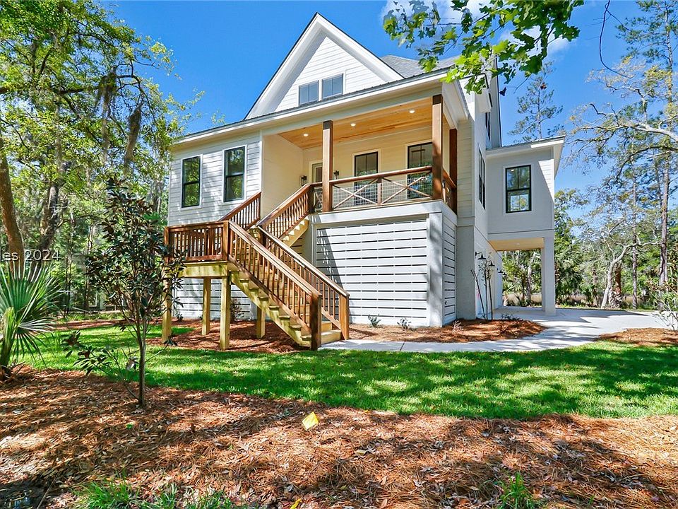 NEW CONSTRUCTION in Rose Hill Plantation, sits on a 0.57 ac lot w/a long driveway & dense LowCountry Estuary to Marsh Views. Blending the needs of today's "Modern Buyer"-offering an oversized 3+car garage (easily affording space for the toys & ample storage below the front/ rear decks), 4 Bedrooms (2 down) & 3 Baths, a spacious white kitchen with large windows & abundant natural light, large walk in laundry room, larger closets, spray foam insulation, a formal dining room (could easily be the perfect office) but would look amazing w/ an oversized farmhouse table. Your chance to own the ideal Modernized- Southern Style Home.