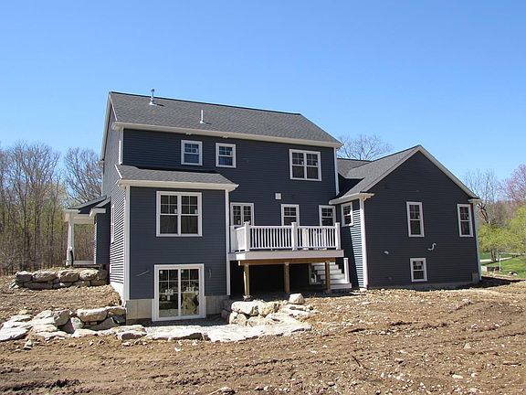 OPEN HOUSE Sat 4/22 & Sun 4/23 1-3pm. New (Under) Construction - 11 Room 4 Bedroom 3 Full and 2 Half Bath Colonial, 2 car attached garage and wrap around Farmer's porch on 4.3 Acre cul-de-sac lot. First floor Master Bedroom with walk-in closet. Master Bath tiled walk-in shower, double vanity. Nearby first floor separate Laundry Room. Kitchen with stainless appliances, farmer's sink, wine fridge, two tiered granite breakfast counter. Breakfast Room slider to composite deck and rail. Dining Room wainscoting and trey ceiling. Open floor plan Family Room recessed lights, stone faced gas fireplace. Guest Half Bath. Hardwood throughout first floor. First and second floor 8' ceilings. Second floor has a Second Master/Guest Bedroom walk-in closet and Master Bath whirlpool tub and shower, double vanity and sit down vanity. Two additional Bedrooms and sitting area. Finished Lower Level Game Room, Play Room, Half Bath, rear walk out slider. Central Air, Propane gas heat, hot water and cooking.