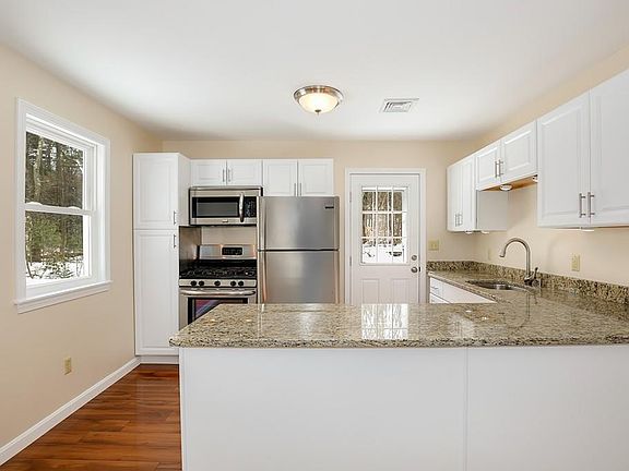 This delightful 2 bedroom, 1 bath home at the end of a cul de sac is in a convenient location in Maynard, on the Concord line and close to shopping. The seller has lovingly recreated the home over the past 6 years, by taking it down to the slab and built a brand new home: new framing, walls, kitchen w granite, SS appliances, (never used), laundry room-W&D incl, gas furnace, gas water heater, new gas pipes and valves, new sewer line, heated flooring, electrical panel, bath, roof, wooden doors, except for bi-folds, new chimney cap and gutters, floors and insulated superbly. Yard was cleaned and loam brought in with top quality grass seed. Flat, tree lined back yard overlooks the woods. A must see!! Additional parking for open House is available in the lot next to Powdermill Equipment on Powder Mill Road/Rte 62.