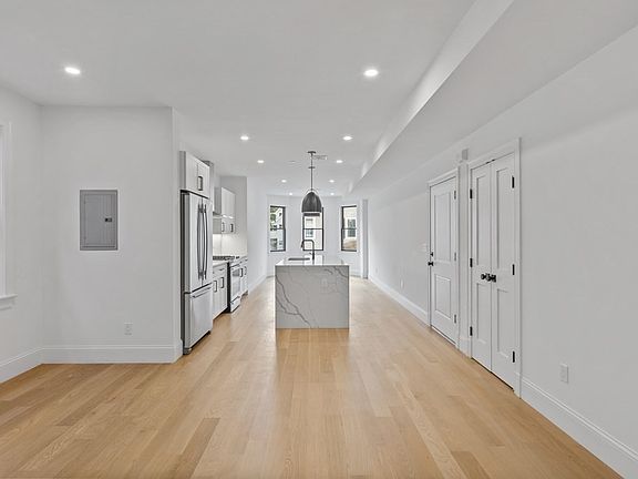 Welcome to the beautiful newly built residences at 5 Bellflower St., a show stopping 2023 boutique luxury construction in Dorchester's premier neighborhood nestled between Savin Hill & South Boston, right off of the highway. From the moment you approach the building you'll notice the meticulous attention to detail with a jaw dropping exterior that compliments the modern luxury finish & detail on the interior. High ceilings make the sprawling open concept living arrangement a truly amazing home to entertain. The stunning kitchen features custom cabinetry, quartz countertops, JennAir appliances, & an island with breakfast bar as well as dining room space. This floor through unit offers a very large living area, a primary bedroom w/ en-suite bath and secondary bedroom, both with direct access to the private deck. A full bath to be found outside both bedrooms. This unit comes with deeded parking right out back.