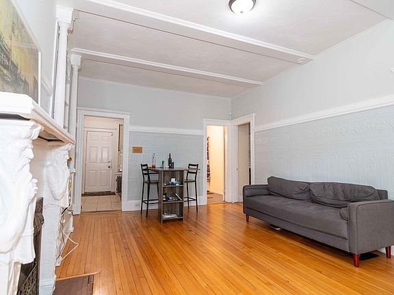 Prime opportunity for an investor or owner occupants. This ~800 square foot corner 2 bedroom 1 bath unit features a rare DEEDED parking spot that is conveniently behind the unit. Inside you will find hardwood floors, high ceilings, an ornamental fireplace with charming detail, and a fully applianced kitchen with dishwasher and solid stone counters. The two bedrooms are both spacious and evenly sized with a closet in each. The layout is great for anyone telecommuting in need of a home office. You will notice when you walk in the high ceiling height, fresh paint, and easy access to the deeded parking spot. The kitchen features a very large pantry with ample room for all kinds of storage. Outside of the kitchen the door opens out onto a back patio that is away from the street, making it feel much more private. There is laundry on site, and designated storage for the unit. Condo fee includes water and heat. This is an excellent location on the Brookline border. 1 block from the B line.