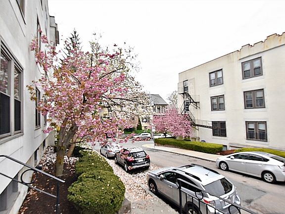This quiet, charming, penthouse condo at 5 Bellvista Rd, Boston, MA has unique, Victorian architectural detail including gorgeous tooled leather walls, a built-in hutch, and a decorative fireplace. The unit, which was originally built for Harvard graduate students, offers a cozy living space with 2 bedrooms and 1 bathroom. In warm ivory and tan hues, the newly renovated kitchen has beautiful, high quality cabinetry, quartz countertops, ceramic tile flooring, garbage disposal, and a washer/dryer. There's also a large pantry with shelves and drawers. In addition to the total finished area, it has a spacious porch, a storage area in the cellar, and a deeded parking spot. Particularly in the spring, Bellvista Rd. is breathtaking with its many cherry trees in full bloom. This well-managed historic home, which is close to public transportation (the Green Line) is perfect for those looking for a low-maintenance lifestyle in a convenient location.