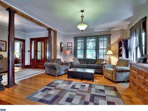 One of Trenton's finest in Cadwalader Heights--all the charm of a by-gone era, but renovated in the last five years. The gracious foyer leads to an open living and dining room. The butler's pantry boasts a wine cooler. The gourmet kitchen has stainless/black appliances, rich granite countertops and white cabinetry. The first floor family room/office has a brick wood-burning fireplace and built-in bookcases. The grand staircase leads to the second floor with a stained glass window on the landing. The second floor has four generous-sized bedrooms and two new period baths with white/black square ceramic floor and white fixtures. There is a finished third floor (no heat. The rear yard has a new patio and a 2 car detached garage. Special features: rewired throughout, low-maintenance brick exterior, stained-glass windows, crown moldings and more! Neighborhood camaraderie abounds with active civic association. Pristine! Truly a gem!