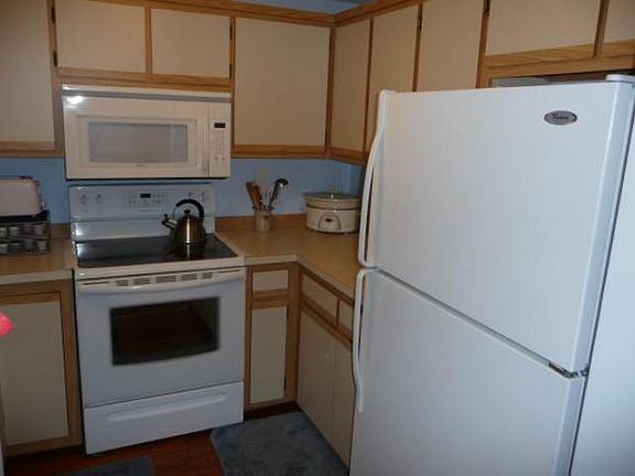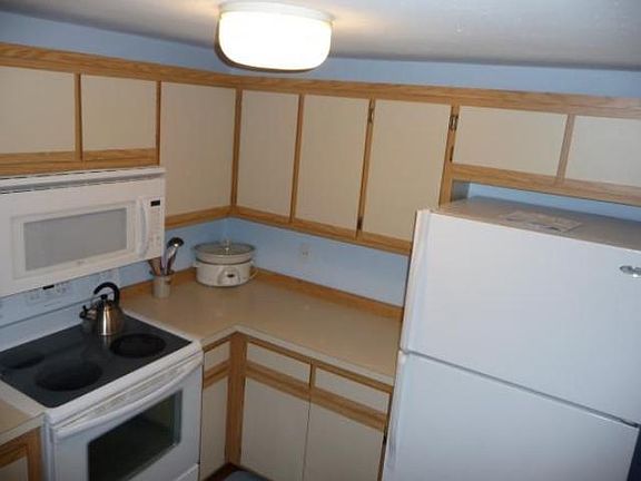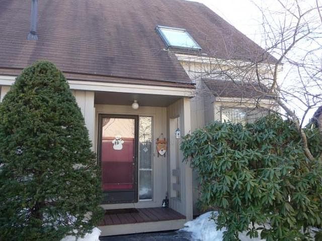 Superb Bedford LOCATION. Move-in ready end-unit townhouse style condo includes hardwood floors;updated baths. Living room w/sliders to large deck and lots of privacy;overlooking wooded lot. Nice kitchen w/dining area; 1/2 bath. Second floor loft space ideal for guests or office/den. Large master bedroom. Full bath on 2nd floor. Unfinished walk-out basement has lots of potential for added living space;sliders to patio. Efficient radiant heat. Single stall detached garage. Easy access to 101;293 and all Bedford amenities. Priced to SELL !