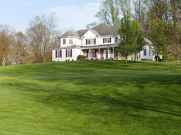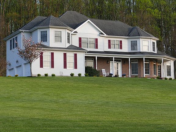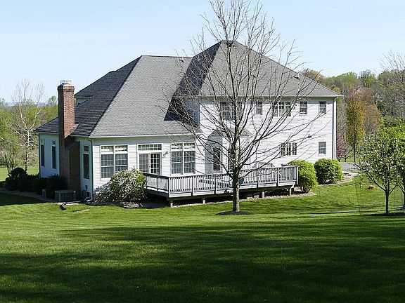 BUYER FINANCING FELL THROUGH!! BACK TO MARKET!! Welcome to 5 Berkshire Way offering 4 bedrooms, 3.5 bathrooms and over 4,100 square feet! Enjoy 24 mile views of the Appalachian Mountains from this extraordinary home on 3.6 acres. With abundant space inside and out, this home features an open floor plan that is perfect for entertaining. The stunning kitchen features a butler's pantry, solid birch custom cabinetry, custom backsplash, large island, recently upgraded stainless steel appliances, and slide-out door to the deck. The adjacent great room features a cathedral ceiling and fan, floor to ceiling large brick fireplace, full wall of windows, and sliding glass door to the deck. The living and dining rooms feature solid oak floors, large windows, and impressive views. The study features a cathedral ceiling with fan, French glass doors, 3 large windows, and its own entry door leading to the wrap-around porch. The main level is complete with a laundry room and half bathroom. Upstairs, the extra-large master bedroom features a tray ceiling and fan, walk in closet, a magnificent sitting room with 180 degree views, private master bath with opposing sinks, corian custom shower, jetted bath, closet, and toilet room with its own door. The rear bedroom has a private bath. The front bedrooms feature a Jack and Jill bath and views. The front two thirds of the basement is finished with plenty of lighting, closet under the stairs, and built-in television shelf with entertainment cabinet pre-wired for cable, cat-5, antenna, and speakers. A door leads to the unfinished area with an abundance of storage space. The built-in 3 car garage has three 9 ft. wide doors, and a 12 foot ceiling, and contains a generator connector with transfer switch to power all essentials during an outage. The exterior of the home is amazing! The front walkway is newly landscaped with all new trees, shrubs, and river rock. The rear of the property is exceptionally private with large 30 ft. wide attached deck. Nestled on a hillside in a beautiful neighborhood of 21 homes, 5 Berkshire Way has so much to offer and will not last! Call to schedule a private showing today!