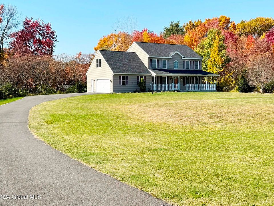 Well-maintained 3 BR, 2.5 BA colonial w/ 2 car garage on a 1.37 acre lot in East Greenbush Schools! Wonderful cul-de-sac neighborhood less than 5 miles to I-90 in No Greenbush. Built in 2003, features a new roof in 2022, gas hot air heat & C/A, new 50 gal water heater 2020, Andersen wood dble pane windows w/ tilt-in for cleaning, and a full bsmt w/ Bilco door egress & deck added in 2014. Offers a spacious eat-in kitchen w/ new Samsung appliances in 2021, cozy gas FP in the family rm w/ French doors to the living rm, HW flooring in the 2-story foyer & the dining room, and convenient 1st fl laundry. Primary BR w/ 2 closets; soaking tub & separate shower in the primary BA. Finished bonus rm on 2nd fl could be used as BR 4 or rec room. Town of Sand Lake w/ a West Sand Lake mail address.