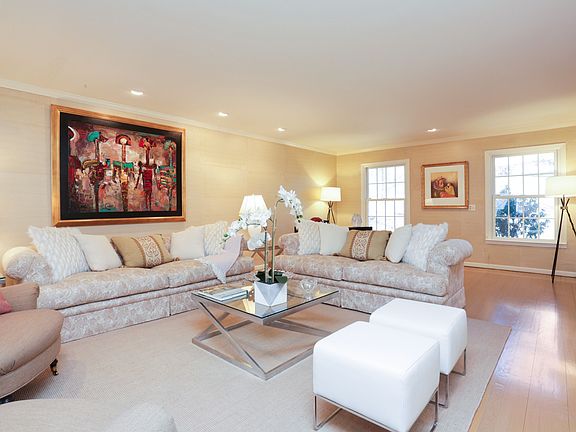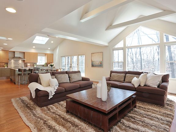 Lovely, expanded and updated Colonial situated on 2 pretty acres on a cul-de-sac. Generously sized, light-filled rooms with a great flow make this meticulously maintained home ideal for spacious living, and perfect for entertaining. A welcoming entryway, hardwood floors, and French doors add beauty and charm. The expanded and remodeled kitchen opens to a family room with a floor-to-ceiling quartzite fireplace, and is an inviting gathering space for family and friends. An adjoining den with built-in cabinetry and wet bar provides additional options for media viewing, study, or office space. A butler's pantry lends added function to the kitchen/dining area. Other special features include skylights, all new windows, 4-zone heating and A/C, fitted closets, heated floor in the master bath, a finished lower level, and a full-house generator. Sq. footage includes 1,309sf in the finished lower level. Convenient to town, schools, shops, highways and train. Move-in condition.