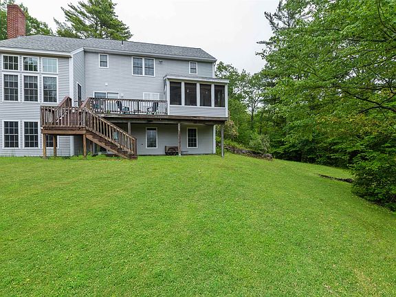 This traditional four-bedroom Colonial Style home with attached two car garage is situated in one of the most sought-after areas of town. Set on 6.65 private acres, the home offers gorgeous westerly views with spectacular sunsets over the mountains. Step inside and be captivated by the main level’s allure, adorned with new hardwood floors that flow seamlessly throughout. The heart of the home is a tastefully upgraded kitchen that creates the perfect fusion of style and functionality. Its open design connects to a delightful dining area and a warm family room graced with cathedral ceiling and a magnificent stone fireplace. Sliding glass doors lead to an open deck that is perfect for the barbeque grill or for enjoying the outside. The dining/living room opens to a screened-in porch providing a comfortable area for informal gatherings. Rounding out the main level is the laundry, half-bath, private study and hallway that leads to the attached garage. A winding staircase provides access to the second floor where you will find four bedrooms including the main bedroom with ensuite bath and walk-in closet. Additionally, there is a large playroom and a full bath. The basement allows for lots of storage or the addition of living space and has direct access to the backyard. Located just minutes to all the Lakes Region has to offer. And as Holderness residents, enjoy exclusive access to a beautiful sandy beach on Squam Lake.