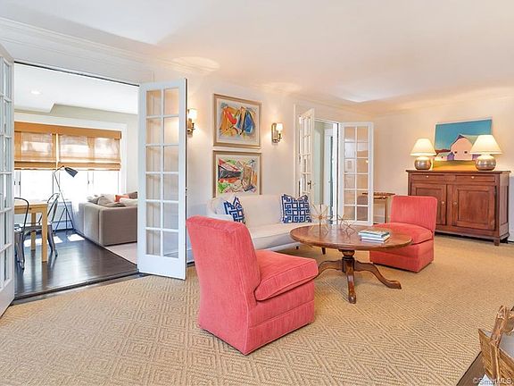 Classic colonial set back on just under an acre is on fabulous Birch Road, a great friendly neighborhood, next to town, train and Cherry Lawn Park. This charming, 5 bedroom, 2 1/2 bath sun-filled house has been completely painted inside and out with all new windows, 2 fireplaces, hardwood floors, 8' ceilings, elegant moldings and built-ins, all in all giving it a truly vintage feel. French doors from an open kitchen/family room lead to an expansive, multi/level deck which overlooks a gorgeous, private backyard.