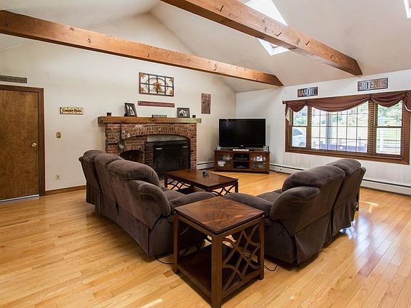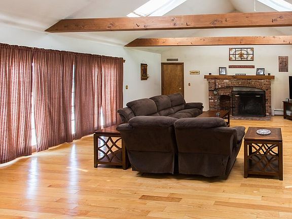 Welcome Home! A beautiful home with so much to offer! This 3 bedroom 1.5 bath cape features; a Kitchen with Granite counter tops & center island with a charming brick detail and ceramic tile flooring, a massive sun-filled family room with cathedrals, sky lights, exposed beams, hardwood floors, and a beautiful brick fireplace! Don't forget about the formal dining room, and a spacious 1st floor office with hardwood flooring, French doors and custom cherry cabinets. The bedrooms are spacious and one bedroom has sliding glass doors to a balcony with views of the private yard! There's another 2-tiered deck that leads to the in-ground pool and overlooks the sprawling, private yard, on a professionally landscaped corner lot. There is a 2 car garage decorated to match the rest of the house but inside it provides lots of storage space above. A full basement for workshop and office. Work, play, and entertain in this lovely home that has everything! Take a look, you deserve it!