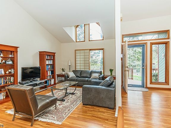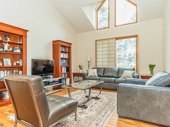 This distinctive looking home welcomes you with an open floor plan. The 2 story Entry Foyer, skylights, LR & DR with cathedral ceilings, lots of windows and natural light gives a bright, open and airy feel. There is a Fireplace in LR, 1st floor BR, and a 2nd floor Loft/FamilyRoom. The partially wooded and well landscaped .45 acre lot with extensive exterior lighting and a large wrap around deck offers a perfect peaceful retreat or wonderful entertaining space. 2 car attached garage, full basement, city water and sewer, gas FHA heat, C/AC and a Stand By Natural Gas Generator. This wonderful home is the ideal downsizing alternative to a townhouse or upsize with easy expansion potential. Great neighborhood, great location - eastern side of Warren, easy access to Rt 78.