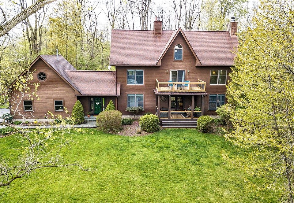 This stunning home situated on 2.3 acres is a true pride of ownership, with every detail thoughtfully updated and maintained! The updated kitchen boasts ample natural light, making it a joy for cooking. The large open-concept living space with vaulted ceilings provide plenty of room for the whole family to enjoy. One of the highlights is the front deck, where you can enjoy your morning coffee or a nightcap beverage while surrounded by a beautifully landscaped yard that feels like a park-like setting. You'll also have the opportunity to observe lots of wildlife, adding to the peaceful and relaxing ambiance. This home also features a third-floor loft, perfect for use as a home office, playroom, or additional living space. Overall, this home is ideal for those who value comfort, style and natural beauty. Conveniently located near Mendon Ponds Park and the Lehigh Valley Trail, providing easy access to a wide range of outdoor activities. UPDATES INCLUDE: NEW PAINT AND CARPET, RENOVATED KITCHEN, NEW FURANCE AND A/C, NEWLY UPDATED BATHROOMS, AND STAINLESS-STEEL APPLIANCES! Come see what this amazing house has to offer. Delayed Negotiations/Offers due May 16 @ 10am.