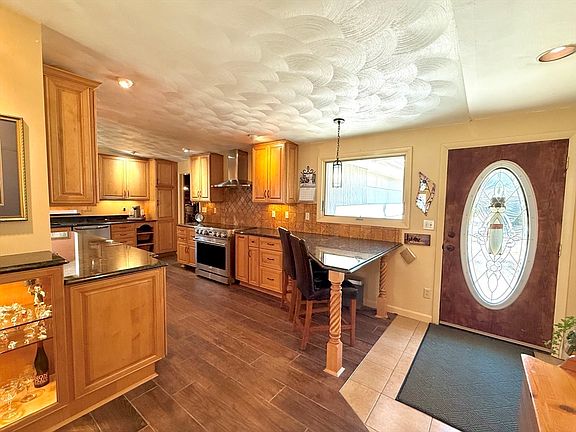 BACK ON MARKET!This Beautifully Maintained 3 bedroom 2 Baths Ranch is on the market after nearly 30 years! This home is situated in a very desirable west side neighborhood* Perfect for entertaining *Open concept living with Custom Kitchen Cabinets Galore*Including double sized drawers for pots and pans and dishes*built in pantry cabinet *granite counters* New Range* BIG Dining room with Custom Stone wood burning fireplace and Picture windows offering beautiful views of the back yard *Great Room with cathedral ceilings Big multiple windows and skylight offering plenty of light*sliding door opens your nice size patio and flat low maintenance back yard with vinyl fenced and shed*Off the kitchen is the laundry room and plenty of extra storage!Home offers solar panels and solar tube lighting in Primary Bath for even greater saving. *NEWLY RENOVATED BATHS*NEWER ROOF*NEWER BOILER* NEWER OIL TANK* NEWER DISHWASHER* NEW RANGE*NEW AIR CONDITION UNITS*SOLAR PANELS*WIRED FOR A HOT TUB