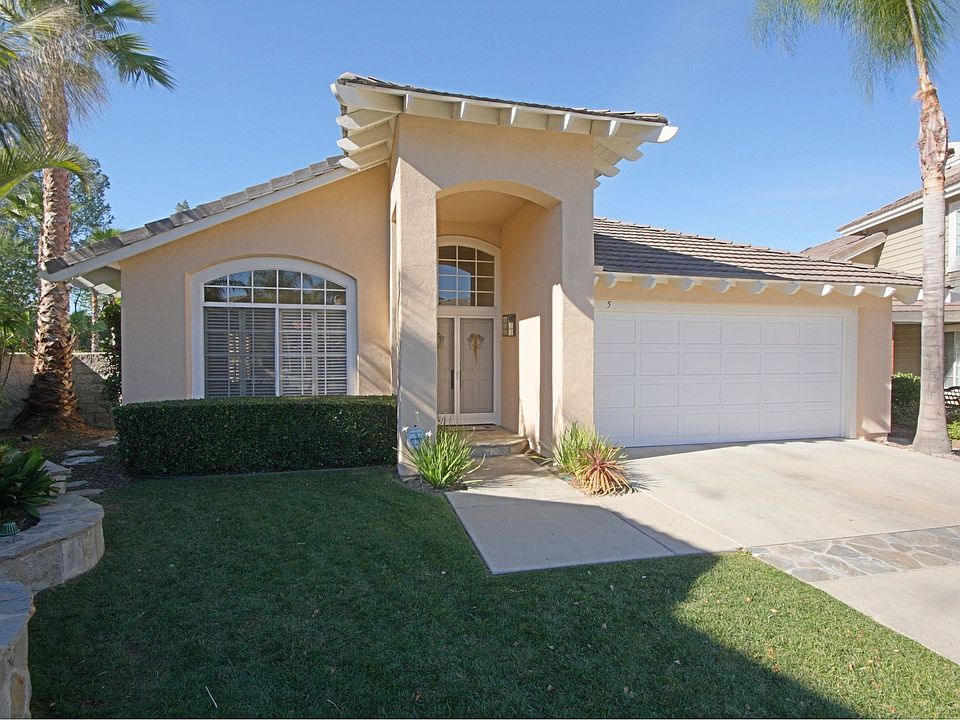 Dove Canyon Single Story! Enormous lot located on a highly desirable cul-de-sac, this home features a beautiful backyard with a pool, spa, patio cover, and a huge grass area. Inside features vaulted ceilings, hardwood flooring & a spacious floor plan. Est. 2,028 sq.ft., 3BD/2BA. www.5Blackburn.com