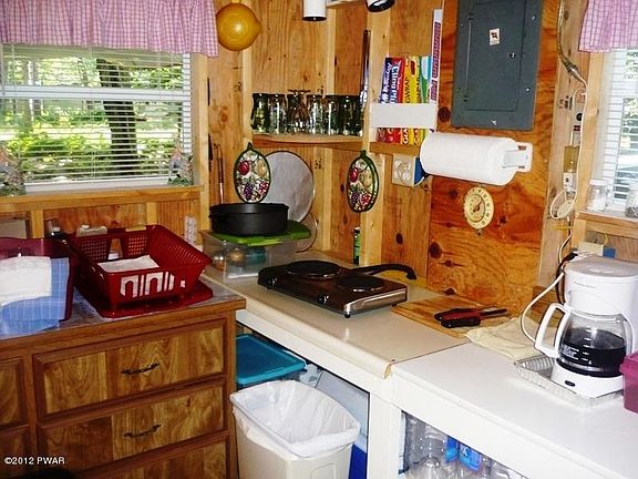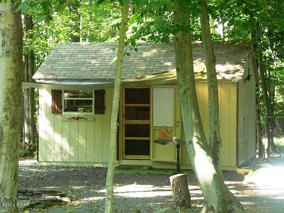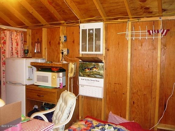 GLAMPING (glamorous camping) all ready to go. Enjoy coming to a peaceful, relaxing camp setting without the work of putting up a tent or camper. Just turn the key - whip up some bacon or grill a steak and have a Coors Light. Small, quiet non-gated community. ATV friendly. Easy drive to I380, I80, I81, Lake Wallenpaupack. Located by many acres of game lands and lakes for fishing. No water or septic. Must see pictures. Contents stay, shed included